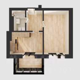 Площадь комнаты позволяет зонировать ее на спальную и гостевую зоны. В проекте функциональная прихожая, чтобы вам было удобно хранить свои вещи.
