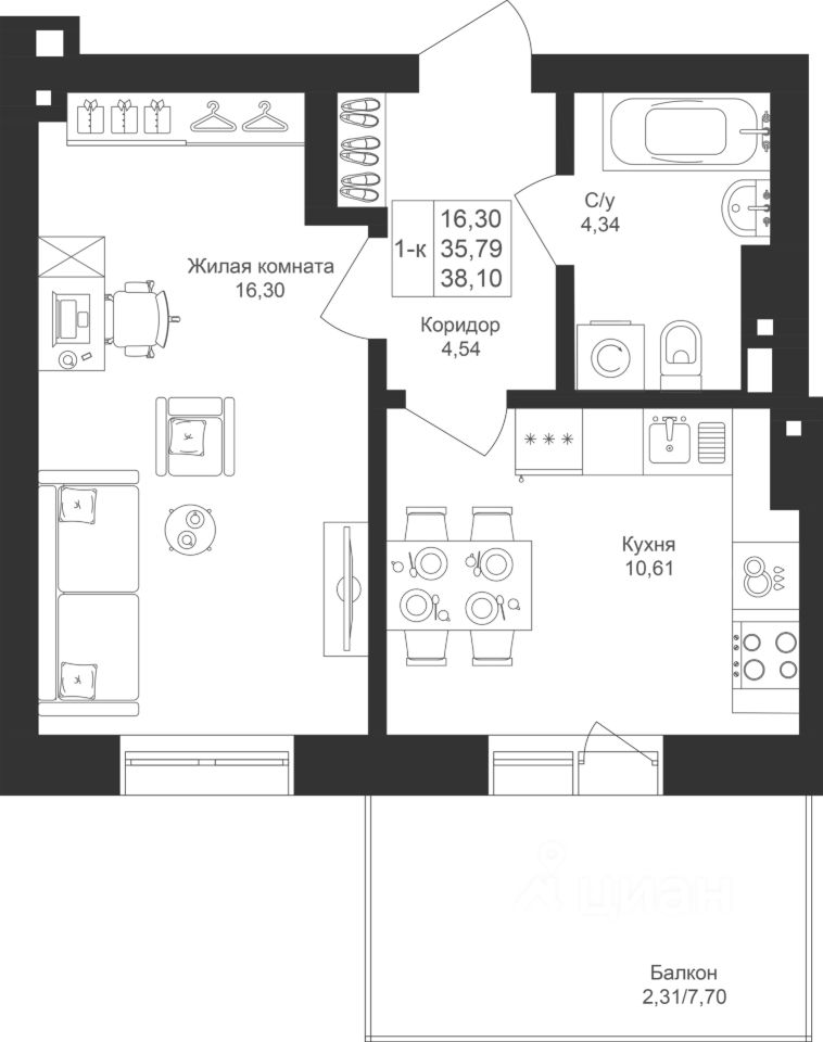 Уютная 1-комнатная квартира с отдельной кухней и выходом на балкон. Здесь можно организовать рабочее место или дополнительное пространство для отдыха.