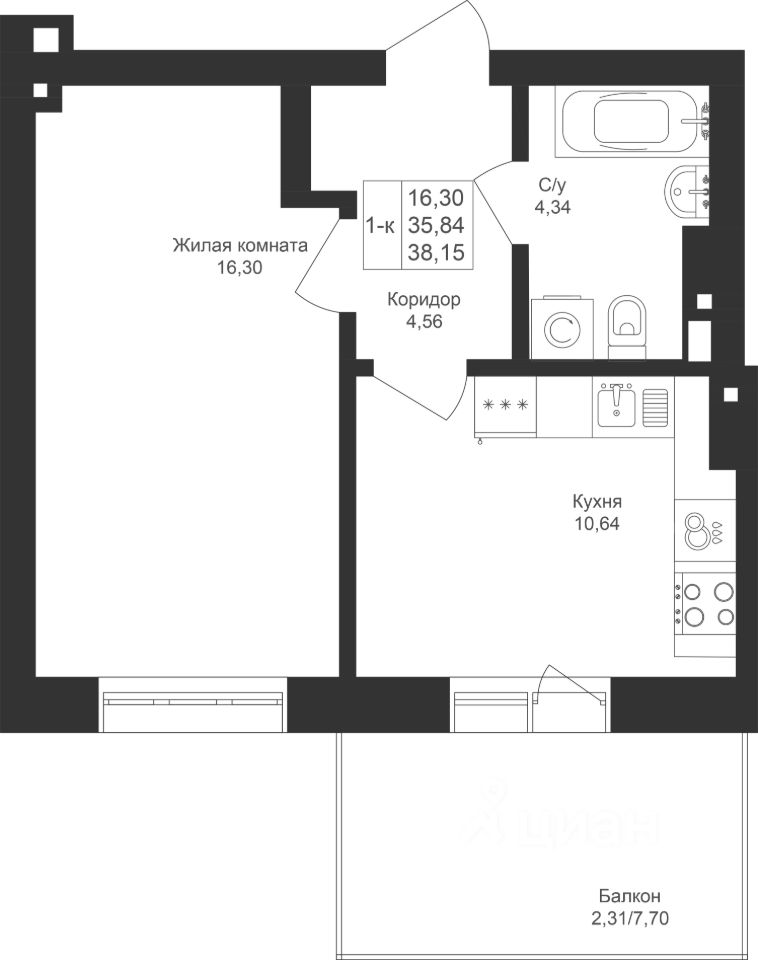 Уютная 1-комнатная квартира с отдельной кухней и выходом на балкон. Здесь можно организовать рабочее место или дополнительное пространство для отдыха.