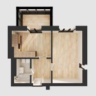 Площадь комнаты позволяет зонировать ее на спальную и гостевую зоны. В проекте функциональная прихожая, чтобы вам было удобно хранить свои вещи.