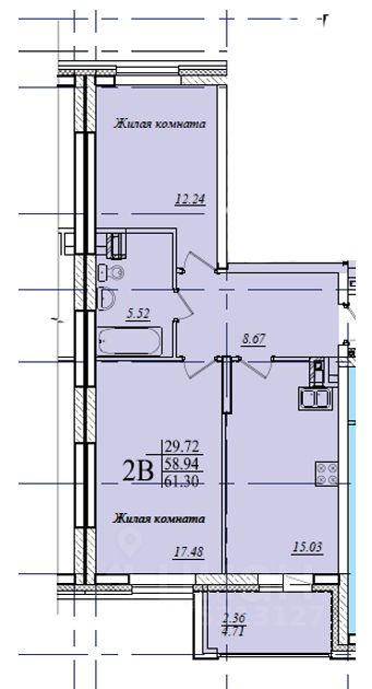 Продается 2 комнатная квартира 7 общей площадью: 61.3 кв.м. на 2 этаже 19 этажного дома.