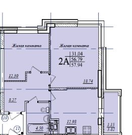 Продается 2 комнатная квартира 18 общей площадью: 57.94 кв.м. на 4 этаже 19 этажного дома.