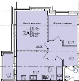 Продается 2 комнатная квартира 151 общей площадью: 58.27 кв.м. на 2 этаже 19 этажного дома.