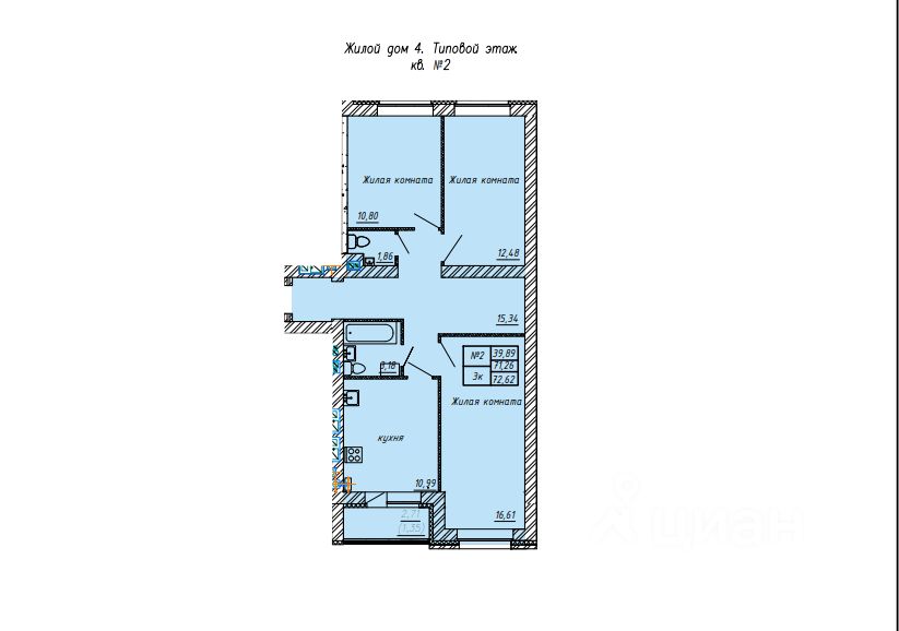 Продаётся 3-комнатная квартира в строящемся доме (Дом 4), срок сдачи: III-кв. 2026, общей площадью 72.62 кв.м., на 4 этаже. "Волшебный сад" - это экологически чистый жилой комплекс с огромной зеленой территорией!