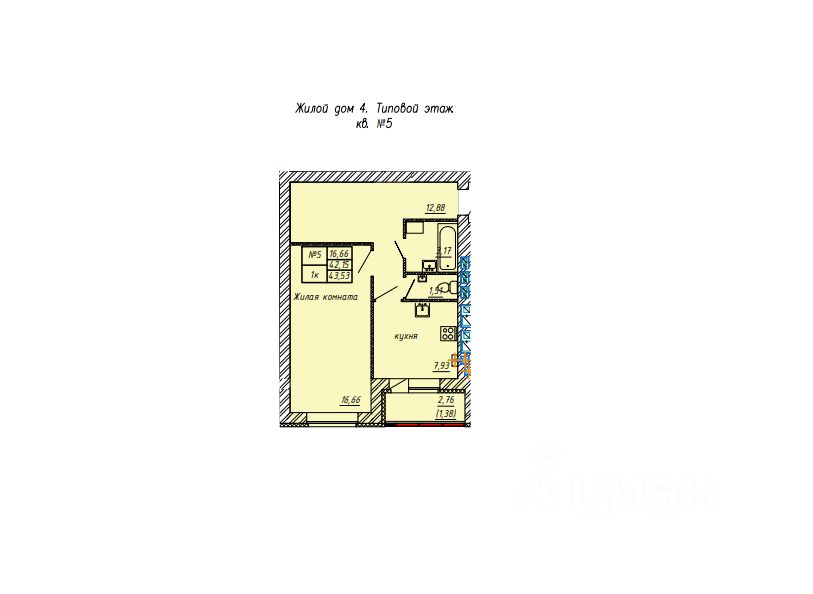 Продаётся 1-комнатная квартира в строящемся доме (Дом 4), срок сдачи: III-кв. 2026, общей площадью 43.53 кв.м., на 5 этаже. "Волшебный сад" - это экологически чистый жилой комплекс с огромной зеленой территорией!