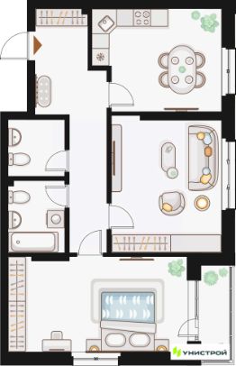 В квартирах выполняется предчистовая отделка с использованием качественных материалов: металлические двери, тепло- и шумоизоляция, энергоэффективные стеклопакеты, скрытая разводка коммуникаций и радиаторы с терморегуляцией.