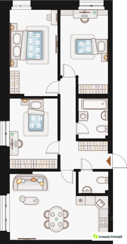 Унистрой—федеральная девелоперская компания «Унистрой», реализующая проекты в Казани, республиках Татарстан и Башкортостан, Ленинградской и Самарской областях. Компания работает на рынке с 1996 года и специализируется на развитии жилой и коммерческой недв...