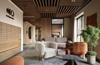 Дворы и входы в подъезды выполнены без пандусов и ступеней. Входные группы оформлены в современном стиле с природными оттенками. Холлы выполнены по авторскому дизайн-проекту и включают домофоны в тёплых зонах, бесшумные скоростные лифты, места ожидания, паркинг для колясок.