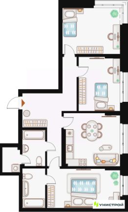 В квартирах выполняется предчистовая отделка с использованием качественных материалов: металлические двери, тепло- и шумоизоляция, энергоэффективные стеклопакеты, скрытая разводка коммуникаций и радиаторы с терморегуляцией.