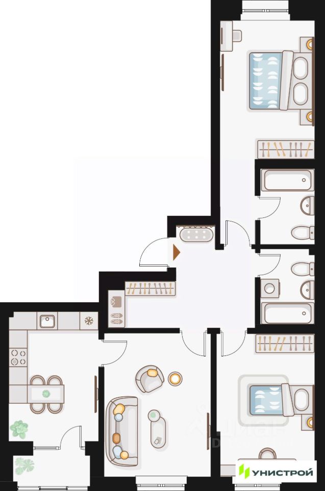 Унистрой—федеральная девелоперская компания «Унистрой», реализующая проекты в Казани, республиках Татарстан и Башкортостан, Ленинградской и Самарской областях. Компания работает на рынке с 1996 года и специализируется на развитии жилой и коммерческой недв...