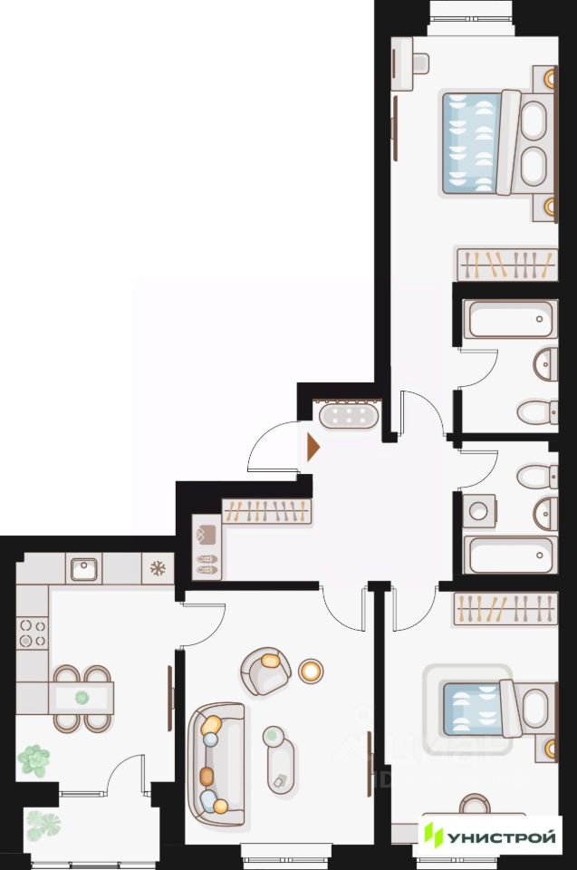 Унистрой—федеральная девелоперская компания «Унистрой», реализующая проекты в Казани, республиках Татарстан и Башкортостан, Ленинградской и Самарской областях. Компания работает на рынке с 1996 года и специализируется на развитии жилой и коммерческой недв...