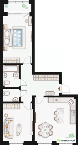 В квартирах выполняется предчистовая отделка с использованием качественных материалов: металлические двери, тепло- и шумоизоляция, энергоэффективные стеклопакеты, скрытая разводка коммуникаций и радиаторы с терморегуляцией.
