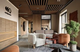 Дворы и входы в подъезды выполнены без пандусов и ступеней. Входные группы оформлены в современном стиле с природными оттенками. Холлы выполнены по авторскому дизайн-проекту и включают домофоны в тёплых зонах, бесшумные скоростные лифты, места ожидания, паркинг для колясок.