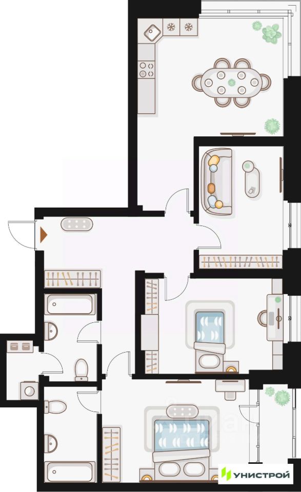 Унистрой—федеральная девелоперская компания «Унистрой», реализующая проекты в Казани, республиках Татарстан и Башкортостан, Ленинградской и Самарской областях. Компания работает на рынке с 1996 года и специализируется на развитии жилой и коммерческой недв...