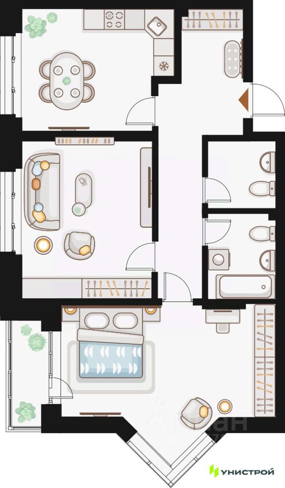 Унистрой—федеральная девелоперская компания «Унистрой», реализующая проекты в Казани, республиках Татарстан и Башкортостан, Ленинградской и Самарской областях. Компания работает на рынке с 1996 года и специализируется на развитии жилой и коммерческой недв...