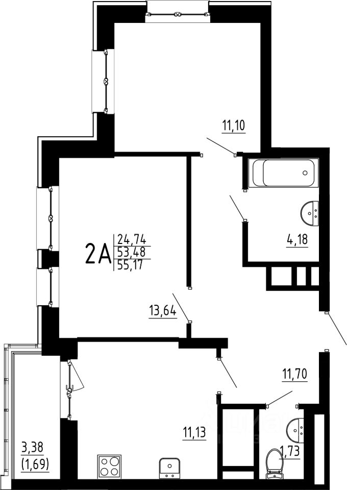 Продается 2комнатная квартира 22 общей площадью: 55.17 кв.м. на 5 этаже в 1 секции 23 этажного дома.