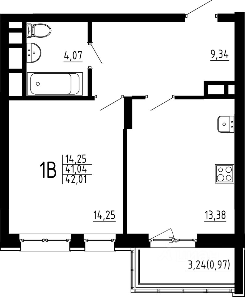 Продается 1комнатная квартира 34 общей площадью: 42.01 кв.м. на 6 этаже в 1 секции 23 этажного дома.
