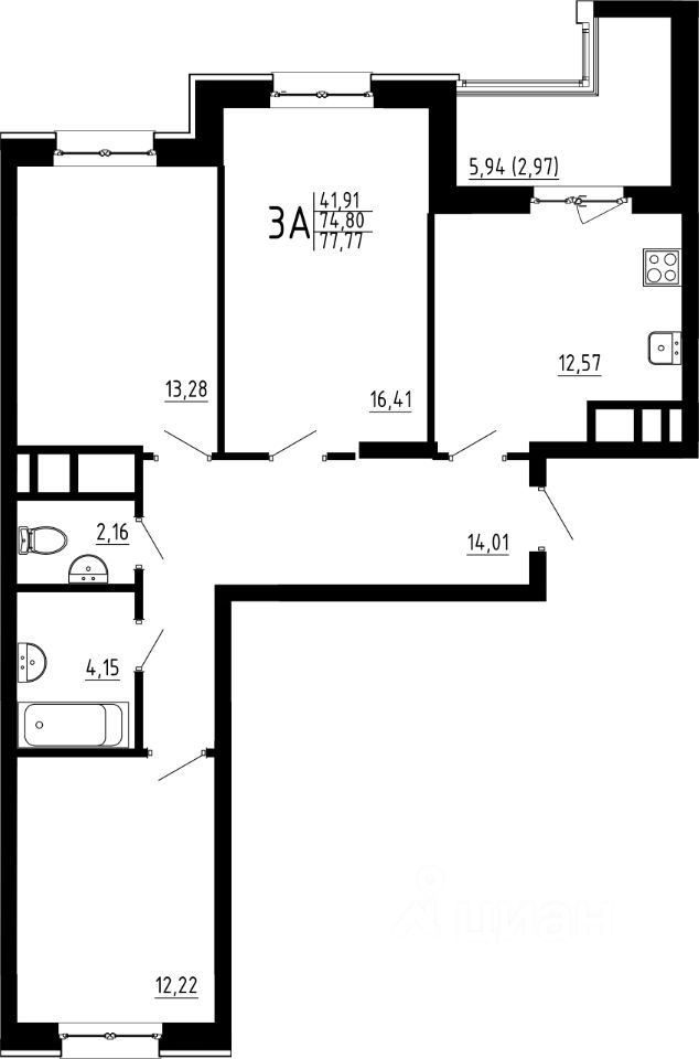 Продается 3комнатная квартира 42 общей площадью: 77.77 кв.м. на 7 этаже в 1 секции 23 этажного дома.