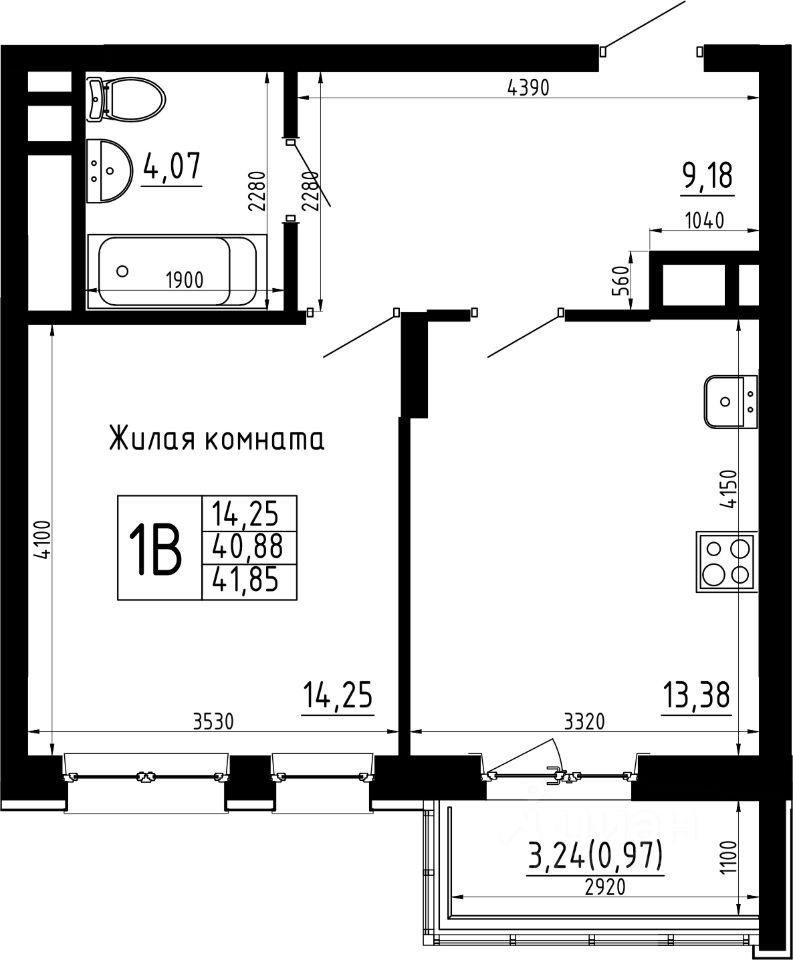 Продается 1комнатная квартира 55 общей площадью: 41.85 кв.м. на 9 этаже в 1 секции 23 этажного дома.