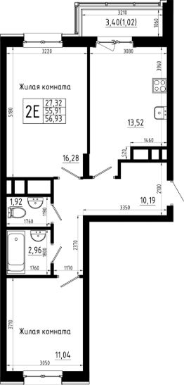 Продается 2комнатная квартира 270 общей площадью: 56.93 кв.м. на 7 этаже в 5 секции 14 этажного дома.