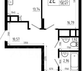 Продается 2комнатная квартира 275 общей площадью: 58.41 кв.м. на 9 этаже в 5 секции 14 этажного дома.