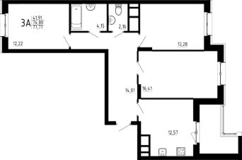 Продается 3комнатная квартира 354 общей площадью: 77.77 кв.м. на 9 этаже в 6 секции 14 этажного дома.