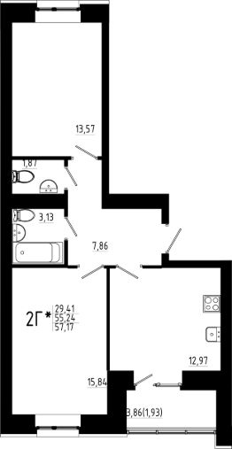 Продается 2комнатная квартира 397 общей площадью: 57.17 кв.м. на 4 этаже в 7 секции 9 этажного дома.