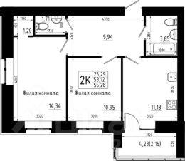 Продается 2комнатная квартира 443 общей площадью: 55.28 кв.м. на 5 этаже в 8 секции 9 этажного дома.