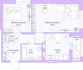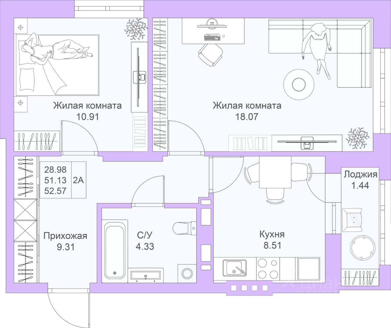 Продается 2-комнатная квартира 451 площадью 52,57 кв.м на 23 этаже проекта "Светлая долина" строительной компании "Ак Барс Дом". Купить квартиру можно в ипотеку со ставкой от 3,2% или воспользоваться услугой trade-in. "Светлая долина" — семейный жилой комплекс, находится в Советском районе Казани, за 20 мин. можно доехать до центра города. Рядом — парк с набережной на 10 гектаров и бульвар. На территории 2 школы и 3 детских сада, магазины в шаговой доступности. В плане — новая дорожная развязка по Мамадышскому тракту рядом с ЖК. Благоустройство по авторскому проекту: экологичные дворы с детскими площадками, спортивные зоны и велодорожки, озеленение и яблоневый сад. Чтобы вы чувствовали себя в безопасности, по периметру установлено видеонаблюдение, тамбур оборудован видеодомофоном. Колясочные и лаунж-зоны в подъезде. Входы расположены на уровне земли, что удобно для мам с колясками и пожилых людей. Уютная и продуманная 2-комнатная квартира с увеличенной гостиной в 18,07 кв. м. Высокие потолки 2, 7 м, отдельная кухня с выходом на балкон, изолированный коридор с местом для хранения вещей. Уход за домом возьмёт на себя УК "Всегда рядом". Благодаря грамотно выстроенной системе, обслуживание квартиры через управляющую компанию "Всегда рядом" будет обходиться дешевле по сравнению с другими. Опытные специалисты помогут вам обеспечить комфортное проживание. Дом там, где мы.