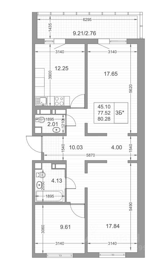 Продается 3-комнатная квартира 174 площадью 80,28 кв.м на 13 этаже. в этажном доме проекта "Дома у сада" компании "Ак Барс Дом". Купить квартиру можно в ипотеку со ставкой от 3% или воспользоваться услугой trade-in.