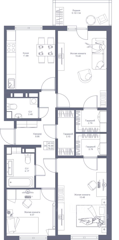Просторная 3-комнатная квартира с продуманной планировкой. Отдельная кухня и три комнаты для личного пространства всех членов семьи. Мастер-спальни для особенного комфорта, с собственными гардеробными комнатами. В квартире просторная лоджия и 2 санузла, функциональная прихожая с отдельной гардеробной комнатой. Окна, расположенные по разным сторонам дома, откроют вид и на двор, и на проспект.