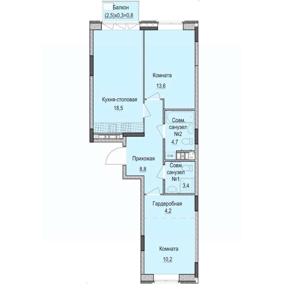 Продаётся 2-комнатная квартира в строящемся доме (Дом 1), срок сдачи: IV-кв. 2026, общей площадью 64.2 кв.м., на 8 этаже. Новый жилой комплекс "Фермаполис" от застройщика "КОМОССТРОЙ" расположен по адресу Республика Татарстан, Казань, Фермское шоссе.