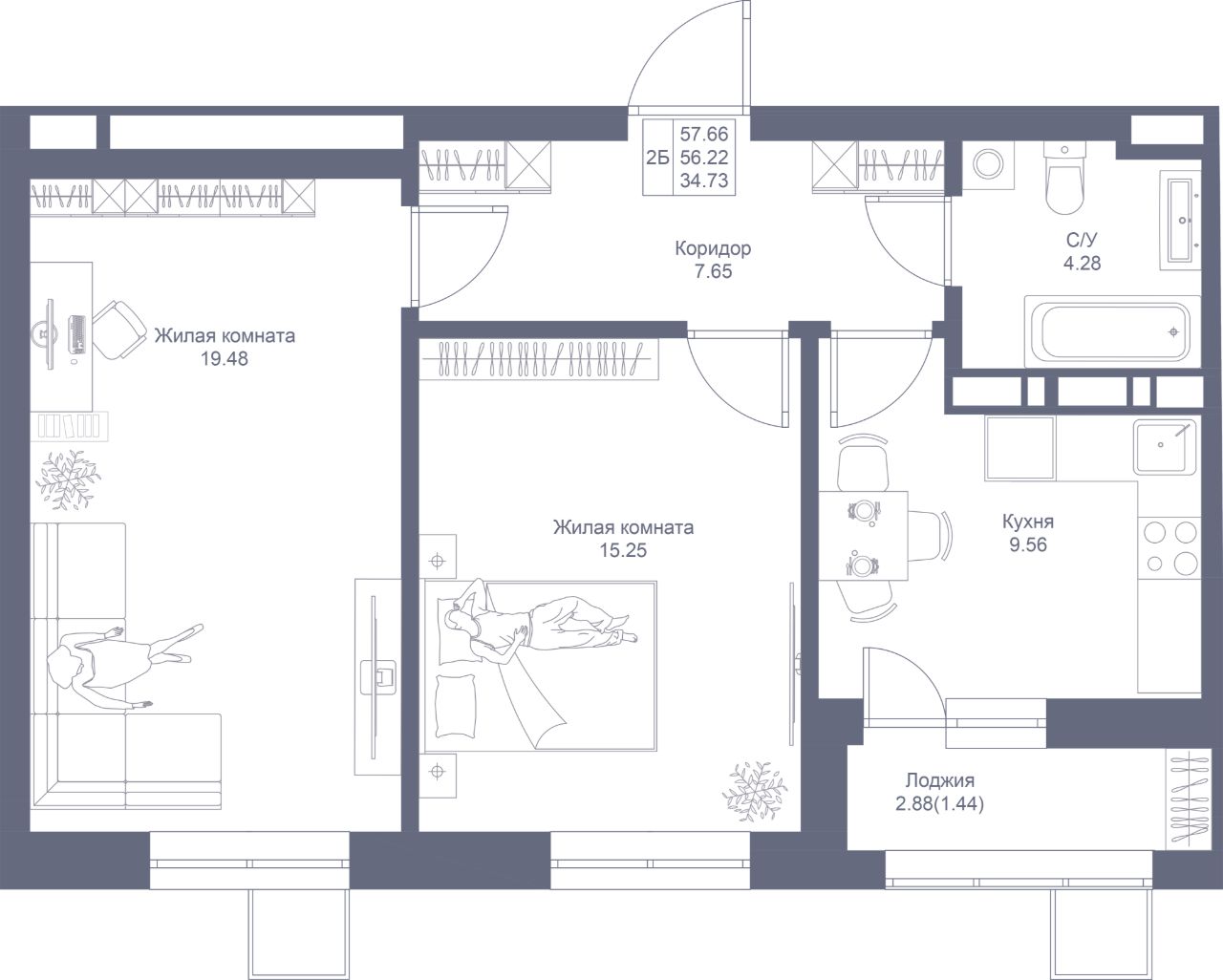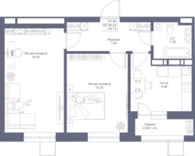 Продается 2-комнатная квартира 44 площадью 57,66 кв.м на 7 этаже 17-ти этажного дома проекта "Мой Ритм" от "Ак Барс Дом". Купить квартиру можно в ипотеку со ставкой от 4,5%.