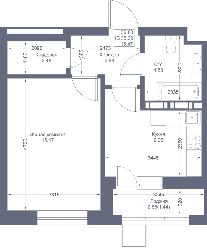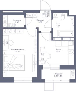Просторная 1-комнатная квартира с гостиной в 16 кв.м. Отдельная кухня, из которой открывается выход на лоджию увеличенного размера. Высокие потолки 2,7 м, правильная геометрия комнат для удобной меблировки. В прихожей есть отдельная кладовая комната, где будет удобно разместить полки и хранить вещи.