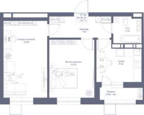 Продается 2-комнатная квартира 402 площадью 57,66 кв.м на 9 этаже 17-ти этажного дома проекта "Мой Ритм" от "Ак Барс Дом". Купить квартиру можно в ипотеку со ставкой от 4,5%.