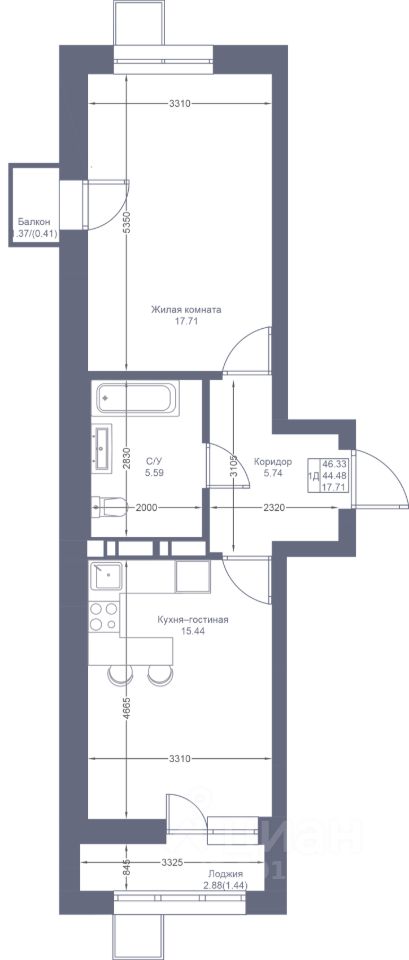 Продается 1-комнатная квартира 469 площадью 46,33 кв.м на 17 этаже 17-ти этажного дома проекта "Мой Ритм" от "Ак Барс Дом". Купить квартиру можно в ипотеку со ставкой от 4,5%.