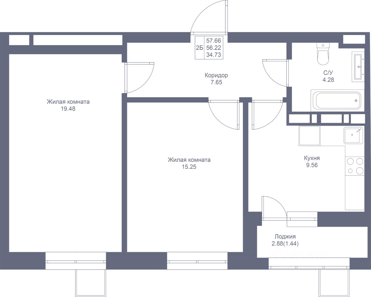 Продается 2-комнатная квартира 92 площадью 57,66 кв.м на 13 этаже 17-ти этажного дома проекта "Мой Ритм" от "Ак Барс Дом". Купить квартиру можно в ипотеку со ставкой от 4,5%.