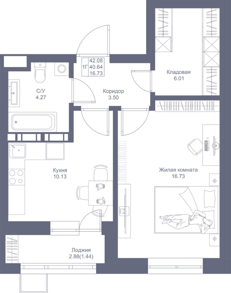 Уютная и продуманная 1-комнатная квартира с просторной евро-гостиной. Кухонная зона расположена в нише, что позволяет скрыть рабочие процессы. Из гостиной открывается выход на лоджию, где можно организовать дополнительное место отдыха. В проекте предусмотрена отдельная спальная комната. Окна, расположенные по разным сторонам дома, позволят удобно проветривать квартиру.