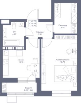 Продается 1-комнатная квартира 313 площадью 42,08 кв.м на 5 этаже 17-ти этажного дома проекта "Мой Ритм" от "Ак Барс Дом". Купить квартиру можно в ипотеку со ставкой от 4,5%.