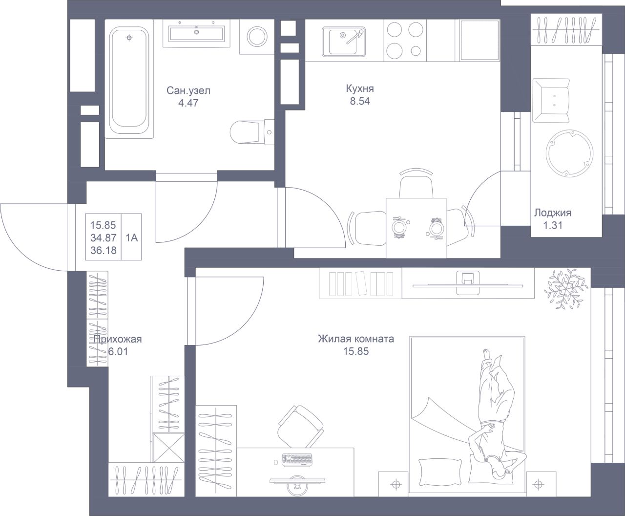 Просторная 1-комнатная квартира с гостиной в 15,85 кв.м. Высокие потолки 2, 7 м, правильная геометрия комнат для удобной меблировки. В прихожей достаточно места для создания вместительной гардеробной. Отдельная кухня, из которой открывается выход на лоджию.