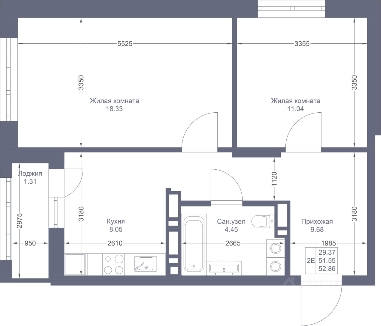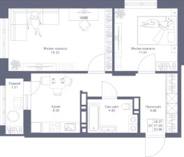 Комфортная 2-комнатная квартира с удачной планировкой. Увеличенная комната в 18,3 кв. м., где можно разместить гостиную или комнату для двоих детей. Отдельная кухня, из которой открывается выход на лоджию. Для хранения вещей в коридоре есть место под шкаф-купе, а удачные пропорции жилых комнат и высокие потолки 2,7 м. позволят выгодно использовать пространство при расстановке мебели.