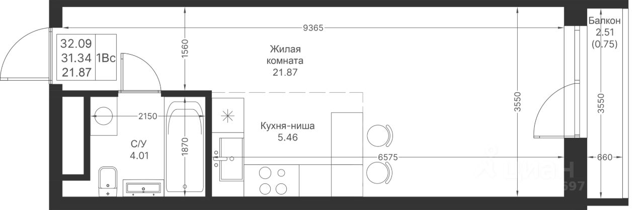 Продается студийная квартира 658 площадью 32,09 кв.м на 5 этаже в строящемся доме проекта "Мой Ритм" компании "Ак Барс Дом".