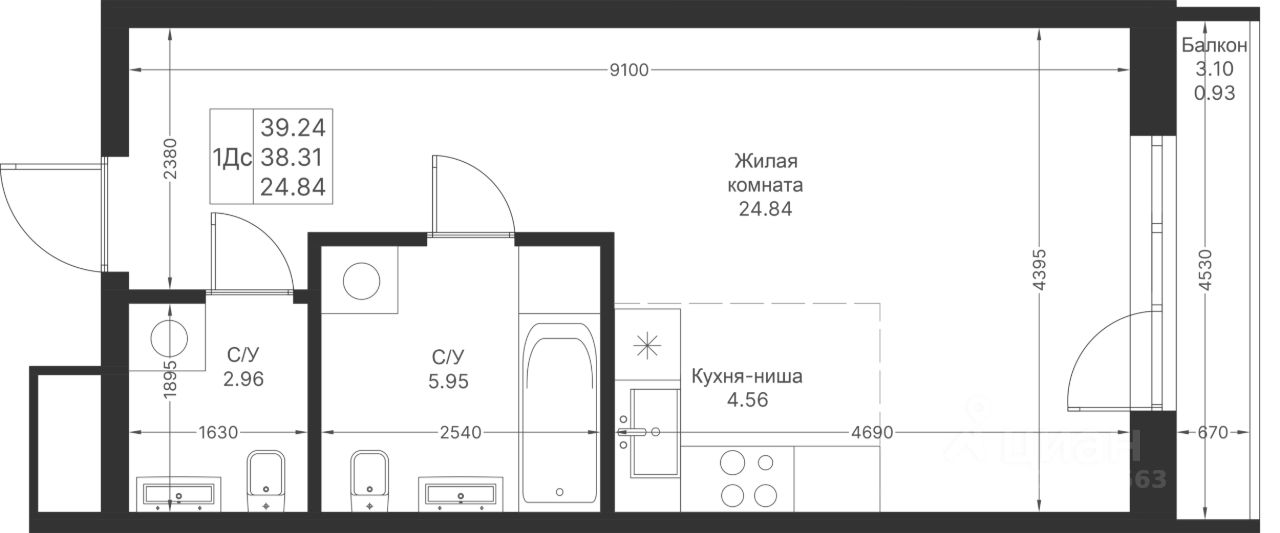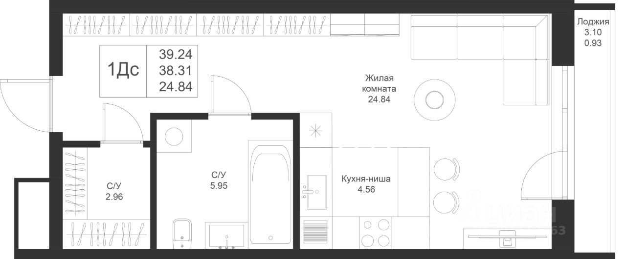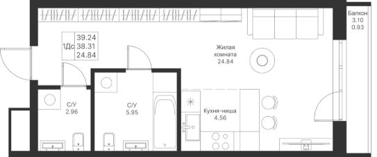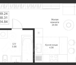 Продается студийная квартира 20 площадью 39,24 кв.м на 3 этаже в строящемся доме проекта "Мой Ритм" компании "Ак Барс Дом".