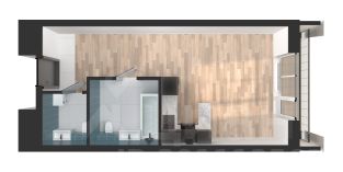 Уютная и продуманная студийная квартира с просторной жилой комнатой и кухней. Удачное зонирование на гостевое и личное пространство.