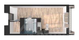 Уютная и продуманная студийная квартира с просторной жилой комнатой и кухней. Удачное зонирование на гостевое и личное пространство.