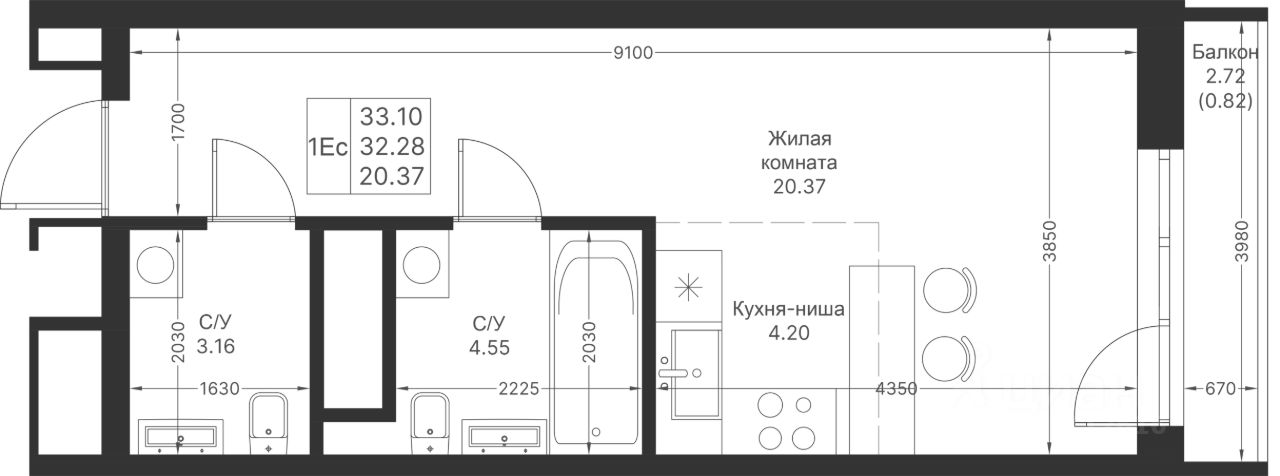 Продается студийная квартира 51 площадью 33,1 кв.м на 5 этаже в строящемся доме проекта "Мой Ритм" компании "Ак Барс Дом".