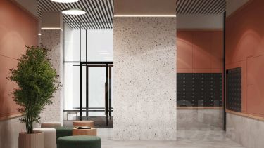 Просторный подъезд с колясочной, вход на уровне земли.