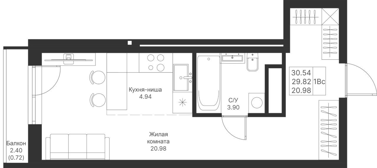 Продается студийная квартира  737 площадью 30,54 кв.м на 13 этаже в строящемся доме проекта "Мой Ритм" компании "Ак Барс Дом".
