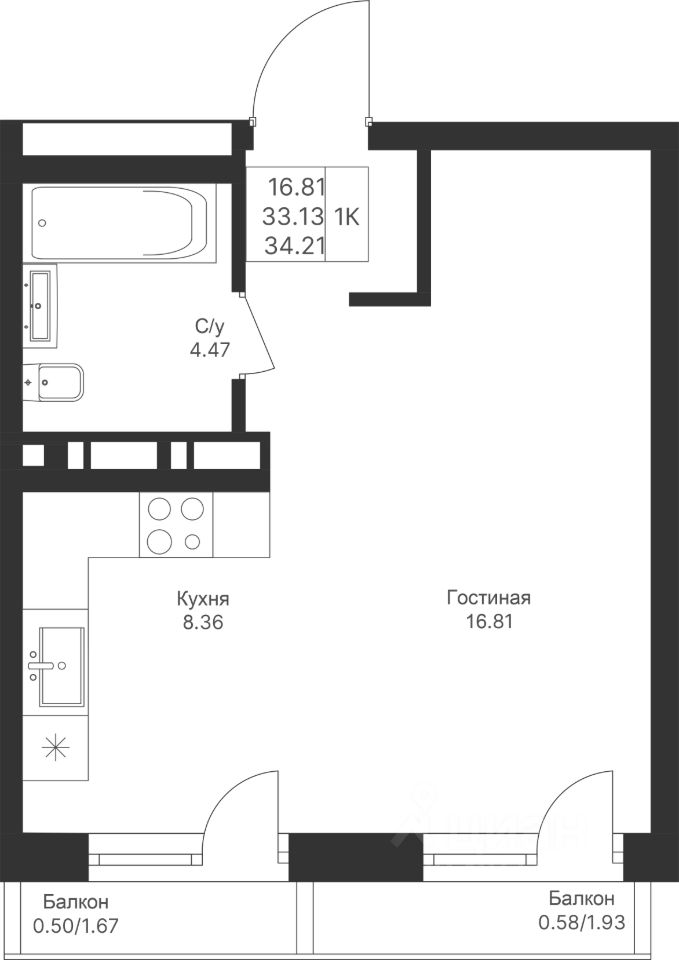 Продается Студия-комнатная квартира 45 площадью 34,21 кв.м на 8 этаже в строящемся доме проекта "Мой Ритм" компании "Ак Барс Дом".
