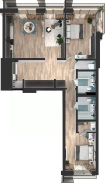 Продается 2 Евро-комнатная квартира 79 площадью 89,34 кв.м на 3 этаже в строящемся доме проекта "Мой Ритм" компании "Ак Барс Дом".